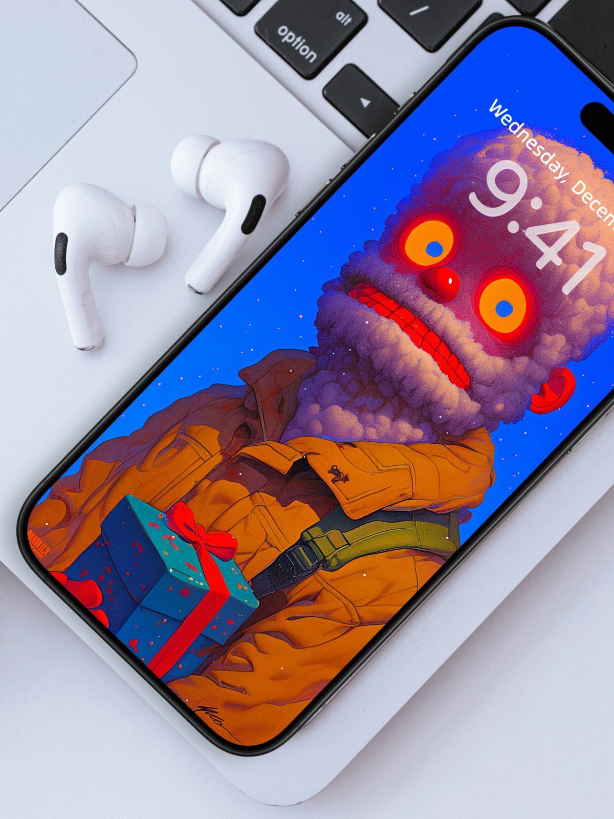 This magical mobile wallpaper showcases the first gift of the season with festive snow atmospheres. The enchanting composition creates a perfect holiday aesthetic wallpaper for those who love the magic of winter celebrations.